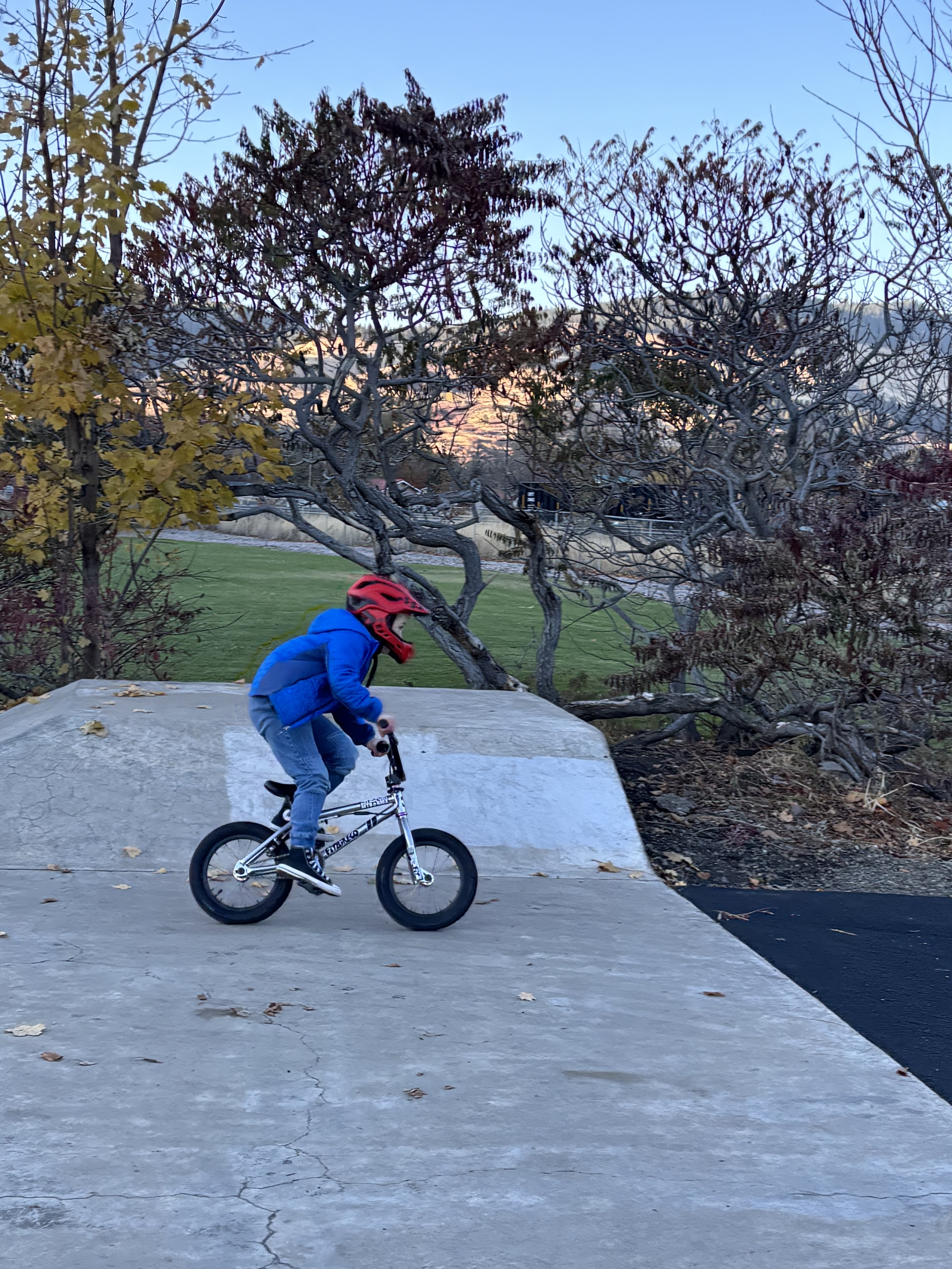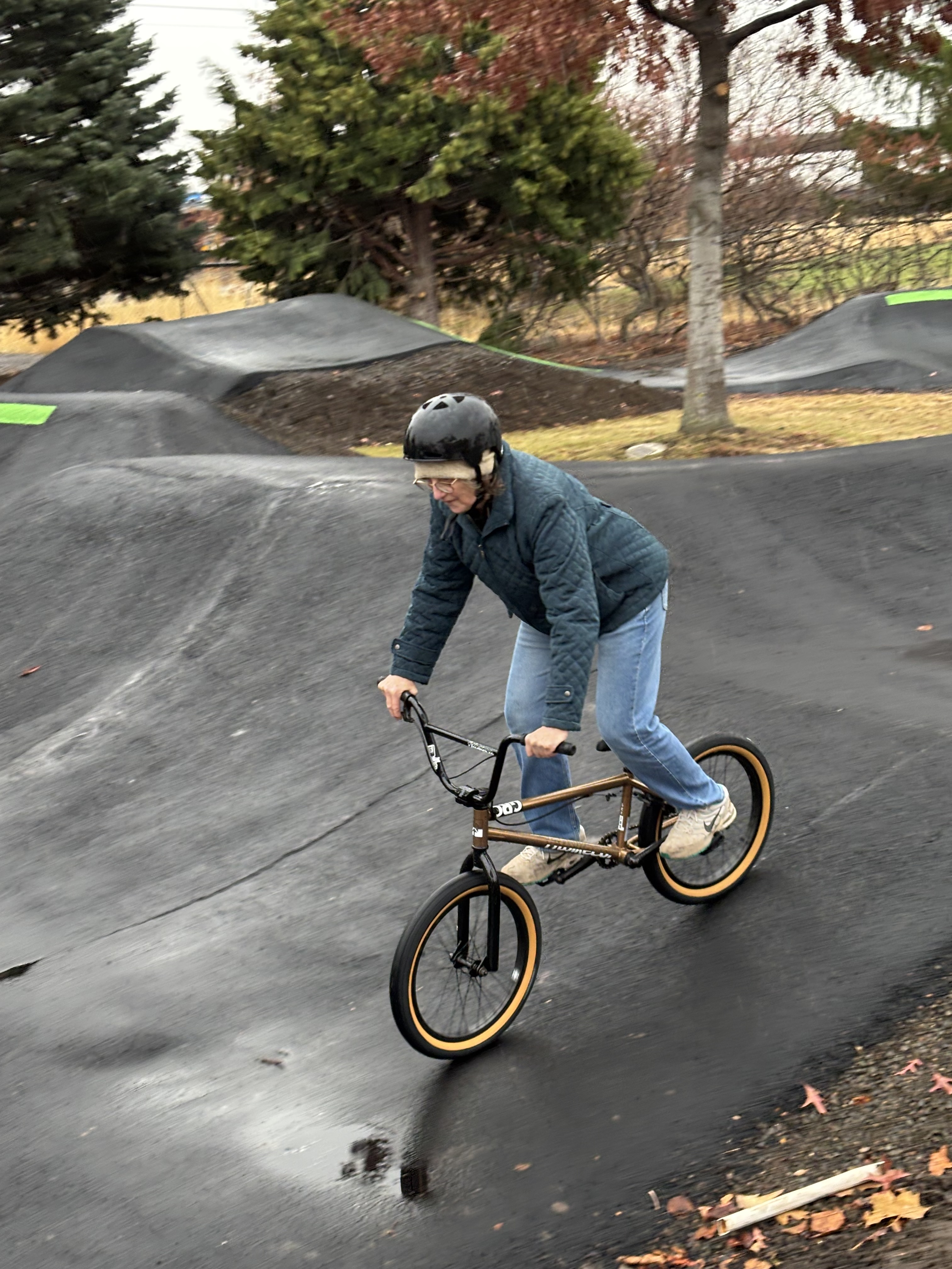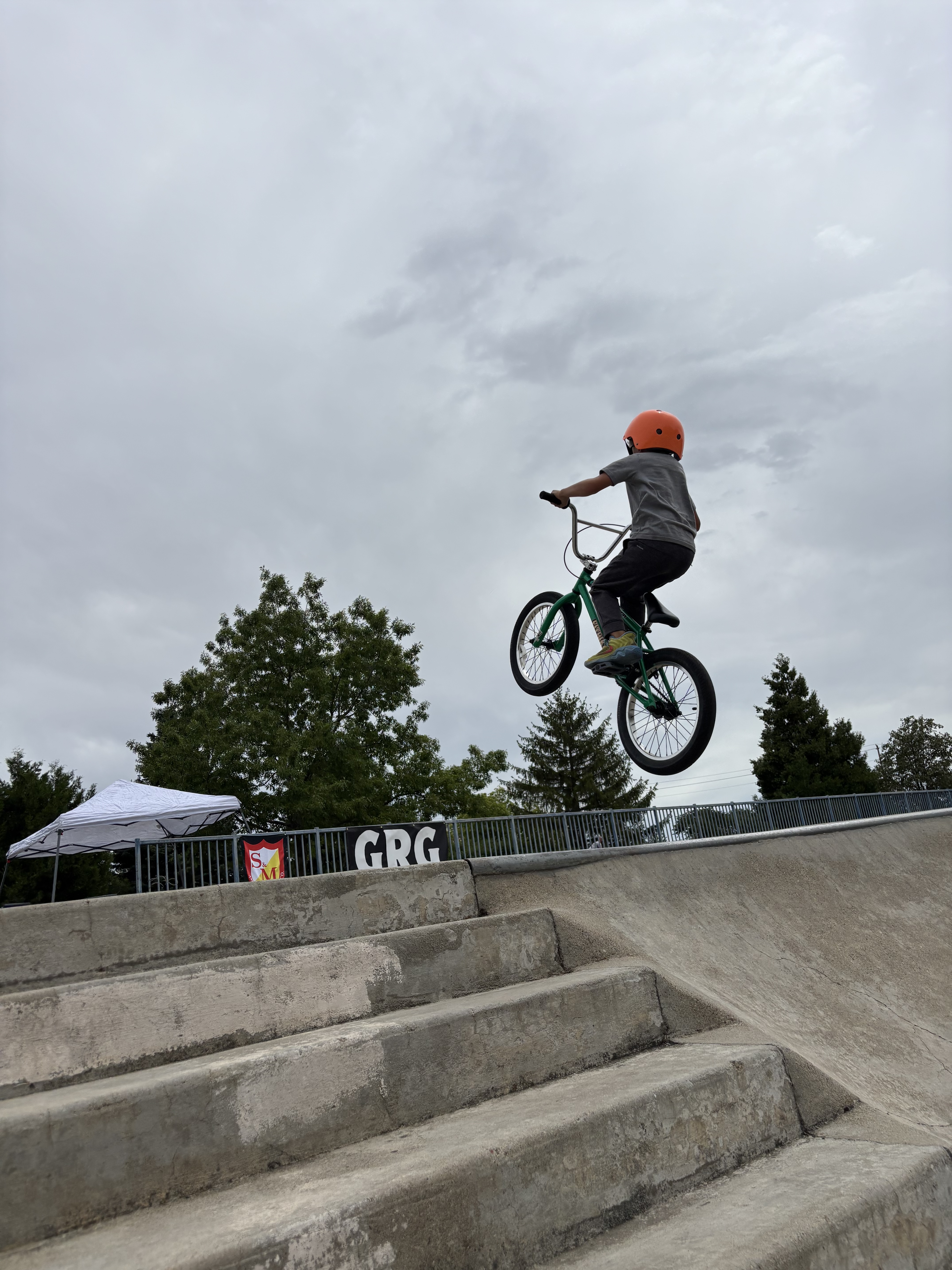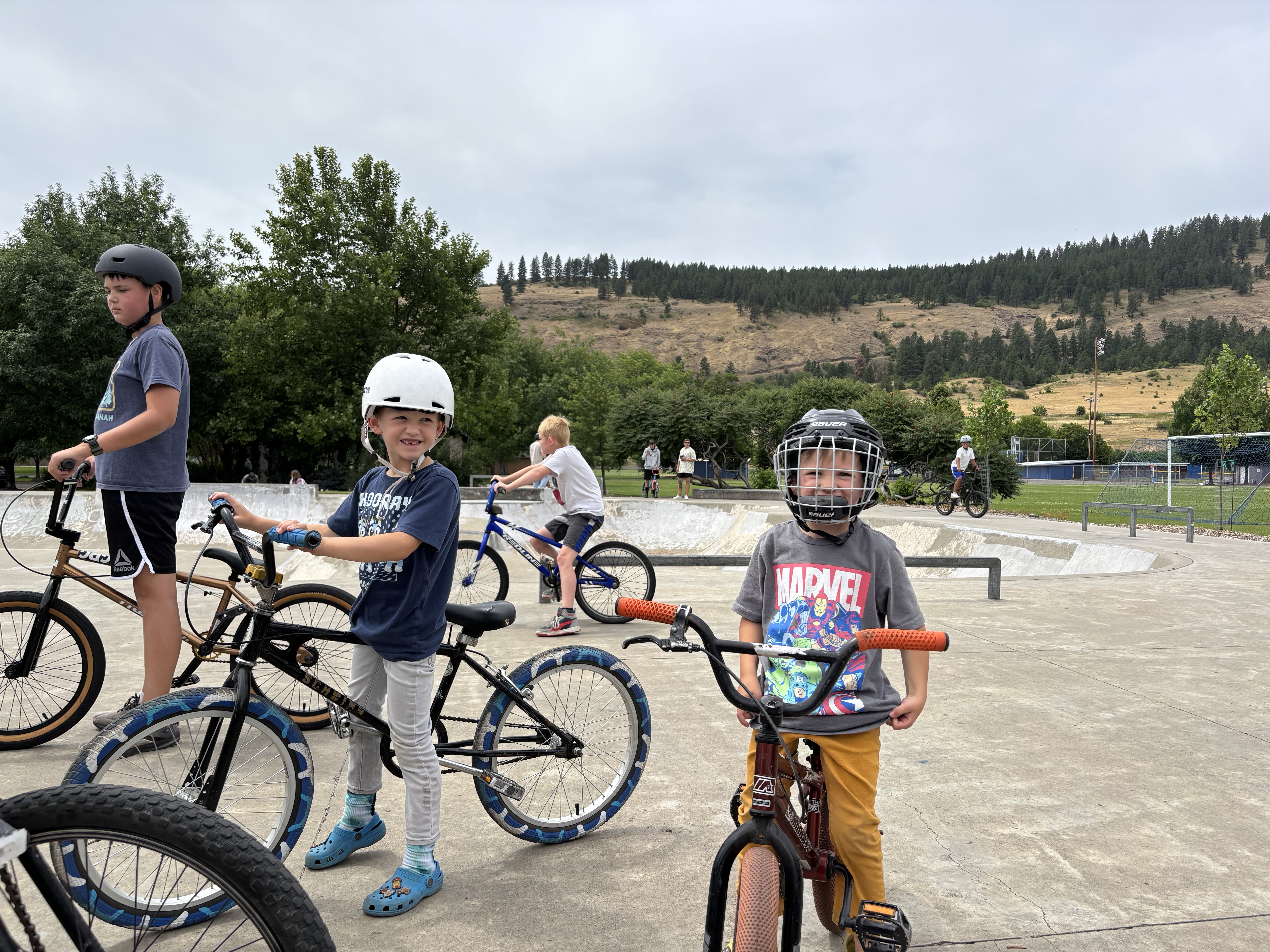 Almost every Wednesday and Saturday afternoon from 3:30 to 6:00 or so, assuming good weather, we bring our library of BMX bikes down to Pioneer Park so that anyone can ride the pump track and skate park. The seven bikes were purchased in fall of 2024 with the generous support of the Wildhorse Foundation. In spring of 2025 we will be adding an additional 4 bikes with the support of Travel Oregon.